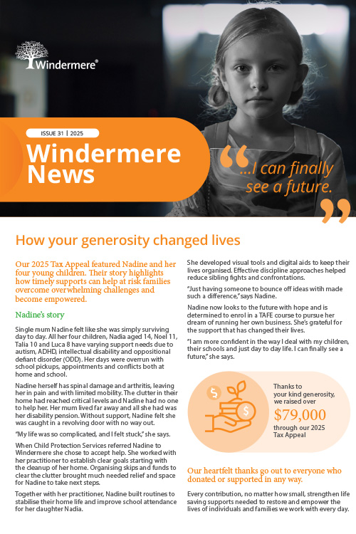 We believe it's essential to stay in touch with Windermere consumers, donors, supporters, professional networks and other organisations.